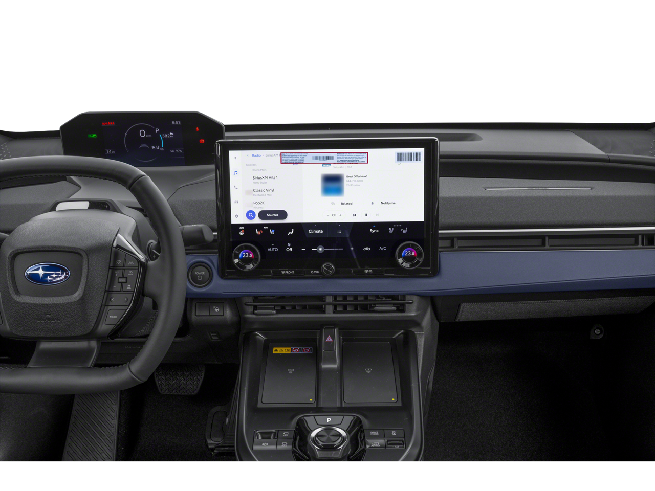 - Radio: Subaru 14" Multimedia System -inc: AM/FM stereo HD radio, multi-touch gesture high resolution display screen, cloud navigation system (navigation subscription required), Bluetooth® audio streaming and hands-free phone connectivity (refer to subaru.com for cell phone compatibility), Bluetooth® hands-free SMS text messaging connectivity (refer to subaru.com for cell phone compatibility), iPod control capability, SiriusXM All Access radio (4 months free trial included/subscription required after), smartphone integration: Android Auto and Apple Carplay w/full screen view and wireless connection, integrated streaming (30 days trial included/subscription required after), assistant w/dual-zone voice control system w/driver and passenger headliner microphone, steering wheel talk switch and audio system, basic function operation, media operation and audio tune operation, USB and Over The Air (OTA) audio system update, USB/Map Over The Air (MOTA) navigation system update, steering wheel control switches for audio and Bluetooth®, 6 speakers, dual Qi (15W each), wireless charging pad, illuminated driver USB C input/charge port and illuminated passenger USB C charge port
