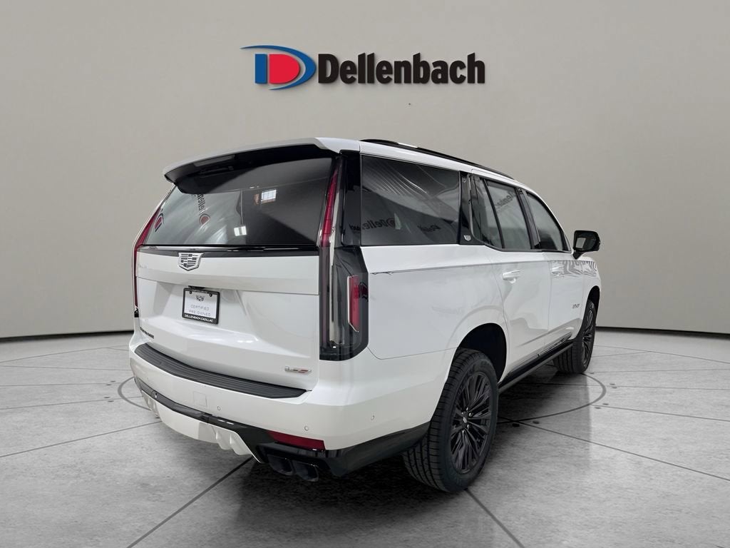 Certified. Crystal White Tricoat 2023 Cadillac Escalade V-Series AWD 10-Speed Automatic with Overdrive 6.2L V8 Supercharged **NAVIGATION/GPS**, **BACK UP CAMERA**, **LEATHER**, **REAR ENTERTAINMENT/DVD**, **SUNROOF/MOONROOF**, **HEATED/COOLED LEATHER SEATS**, **2ND ROW BUCKET SEATS**, **3RD ROW SEAT**, **POWER LIFTGATE**, **Bluetooth® AND USB CONNECTION**, **CLEAN CARFAX, NO ACCIDENT HISTORY**, **XM/SIRIUS SATELLITE RADIO**, **ONSTAR**, **HEADS UP DISPLAY**, **HEATED REAR SEATS**, **HEATED STEERING WHEEL**, **PREMIUM SOUND**, **PANORAMIC SUNROOF**, **CRUISE CONTROL**, AWD, Jet Black Leather.